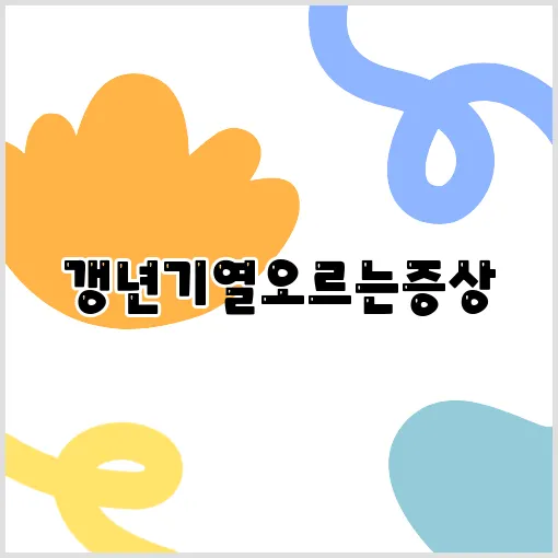 갱년기, 특히 열오름증상으로 고민하는 많은 여성분들이 계십니다. 이 시기에는 몸과 마음이 함께 변화하며 예상치 못한 열감이나 땀이 내려앉는 듯한 증상들이 자주 나타납니다. 특히 폐경기 열감은 일상생활을 불편하게 만들고, 건강관리에 있어서도 중요한 문제로 떠오르는데요. 오늘은 갱년기열오름증상을 비롯한 다양한 갱년기 증상에 대해 깊이 살펴보고, 어떻게 건강하게 극복할 수 있는지 함께 이해해보는 시간을 가져보겠습니다. 이 글을 통해 당신이 겪고 있는 증상의 원인과 대처법을 쉽고 상세하게 알게 되기를 바랍니다. 이제, 갱년기의 대표적 증상과 그 원인, 그리고 완화 방법까지 차근차근 살펴보면서, 건강한 갱년기를 보내는 길을 함께 찾아보도록 하겠습니다.