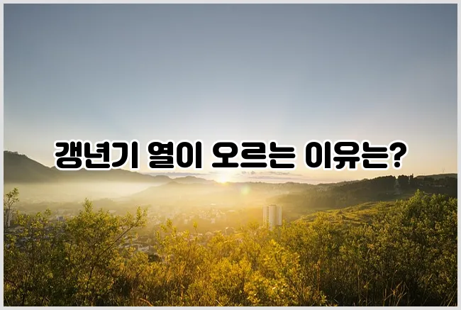 갱년기 열이 오르는 주된 원인은 나이와 함께 에스트로겐 호르몬 수치가 낮아지면서 뇌의 체온 조절 기능에 영향을 주기 때문입니다. 이로 인해 체온 조절이 불안정해지고, 갑작스러운 혈관 확장으로 인해 피부가 붉어지고 열이 나는 증상이 나타납니다. 또한 스트레스와 신체적, 정신적 피로도 증상을 악화시킬 수 있습니다.